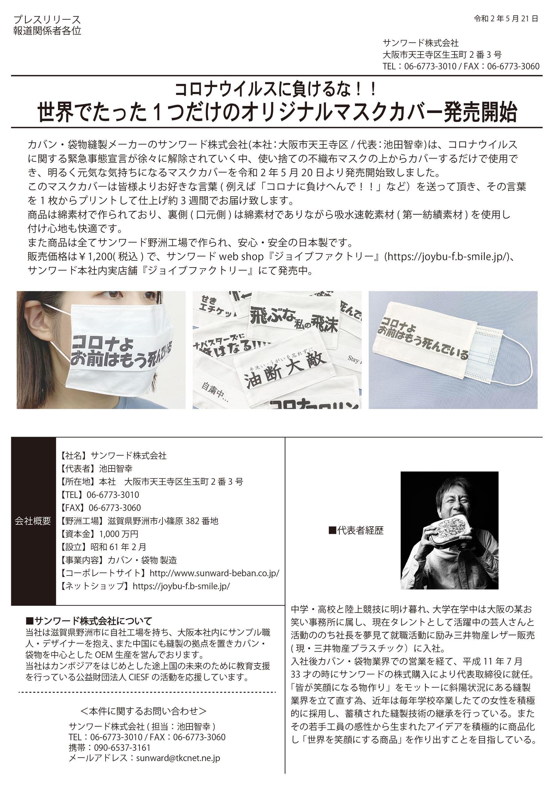 世界でたった一つのオリジナルマスクカバー販売開始