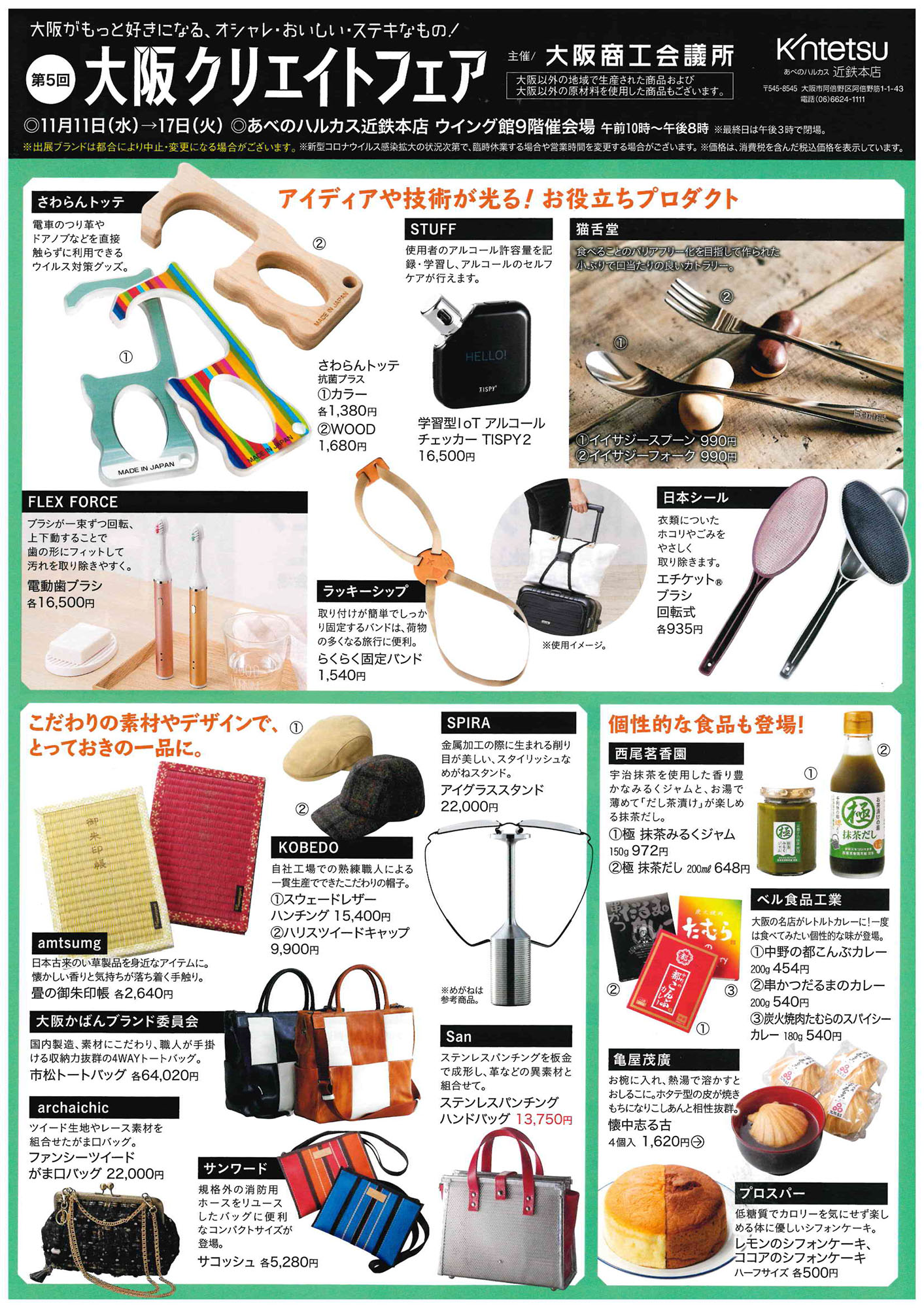 11/11(水)よりあべのハルカス近鉄本店にて開催される「大阪クリエイトフェア」に出展致します。