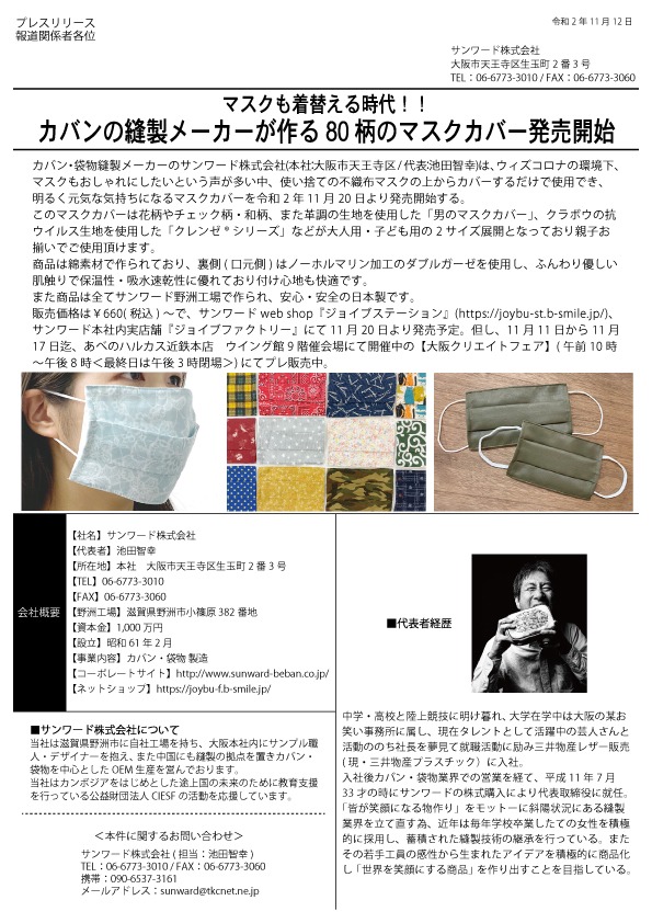 カバンの縫製メーカーが作る80柄のマスクカバー発売開始
