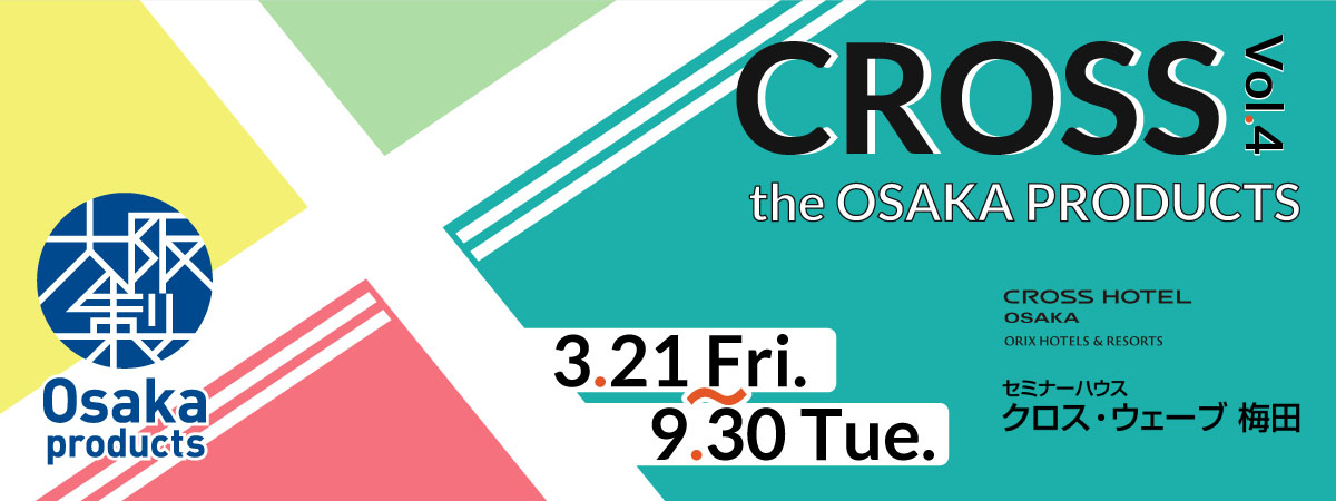 3月21日(金)より宿泊型研修施設である「セミナーハウス クロス・ウェーブ梅田」にて開催される大阪製ブランド製品の展示イベント「CROSS the OSAKA PRODUCTS Vol.4」に参加いたします。