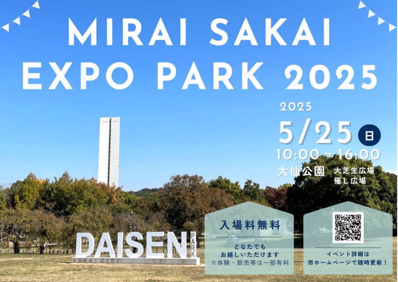 2025年5月25日(日)に「大阪・関西万博」をテーマに大仙公園にて開催されるイベント「SDGs fest.×MIRAI SAKAI EXPO PARK 2025」に出店いたします。