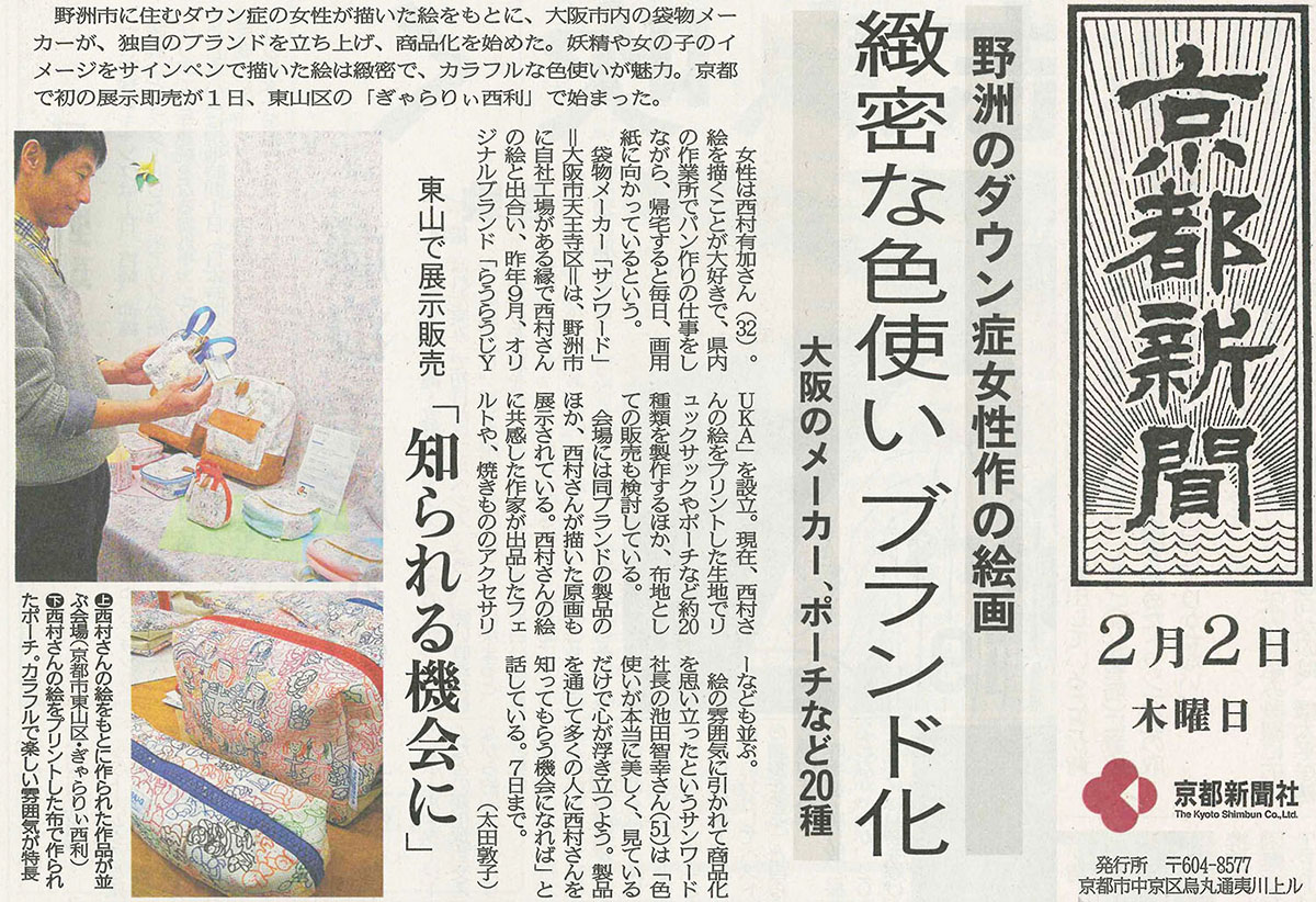 「RAU-RAU-G YUKA」について「京都新聞」に掲載いただきました。