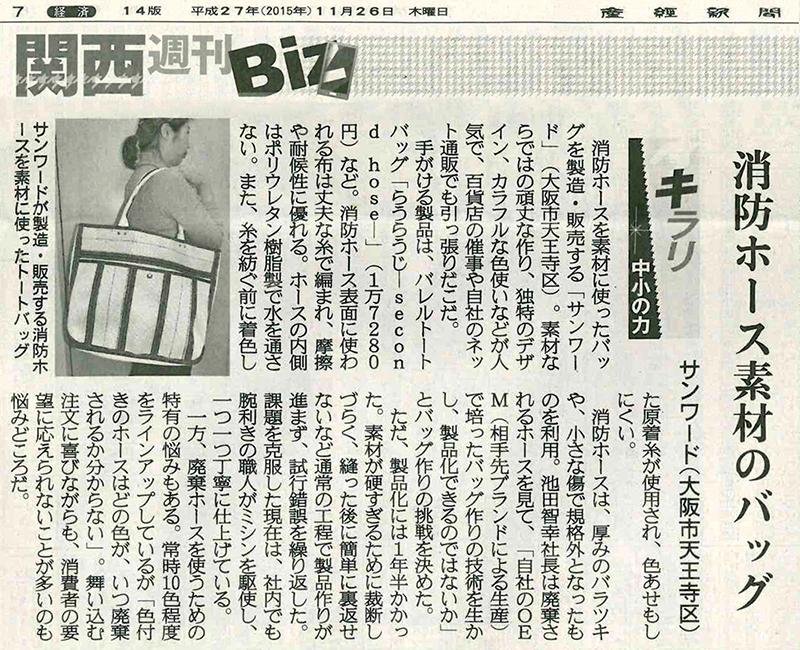 「らうらうじ-second hose-」について「産経新聞」に掲載いただきました。