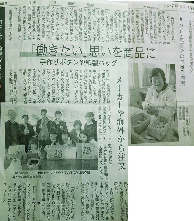 福島県郡山市の「ふたば製作所」では、原発周辺の同県双葉郡から市内の仮設住宅に避難している障害者ら十数人が活動しており、使用済みのA4封筒を使った紙製のバッグを作ることにしました。