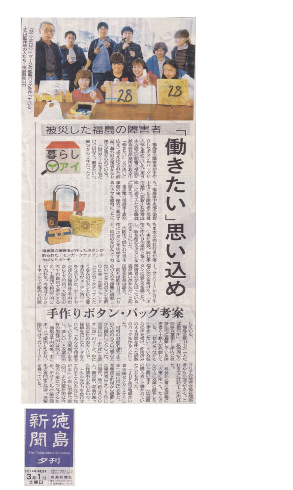 「ものづくりで復興に貢献したい」との思いから誕生した、福島県の障害者が手作りしたボタンやバッグ。東日本大震災の影響で受注が減る福祉作業所がある中、「働きたい」との思いに応えて考え出された商品です。
