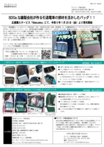 お知らせSDGsな縫製会社が作る引退電車の部材を活かしたバッグ!!